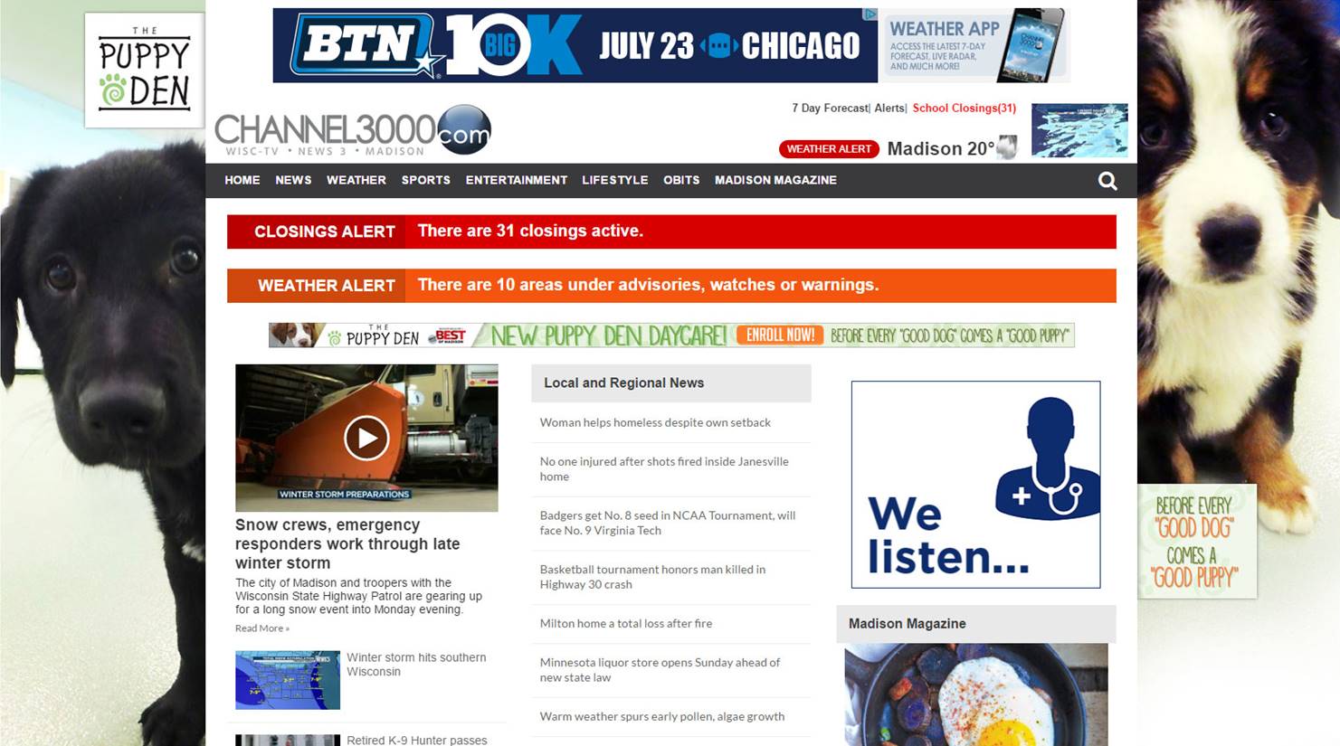 A page skin with a companion pencil ad on the home and news pages of one of our local news information websites, offered them the reach they were looking for, and adding an extra 7-day flight for the pencil ad gave them additional frequency.